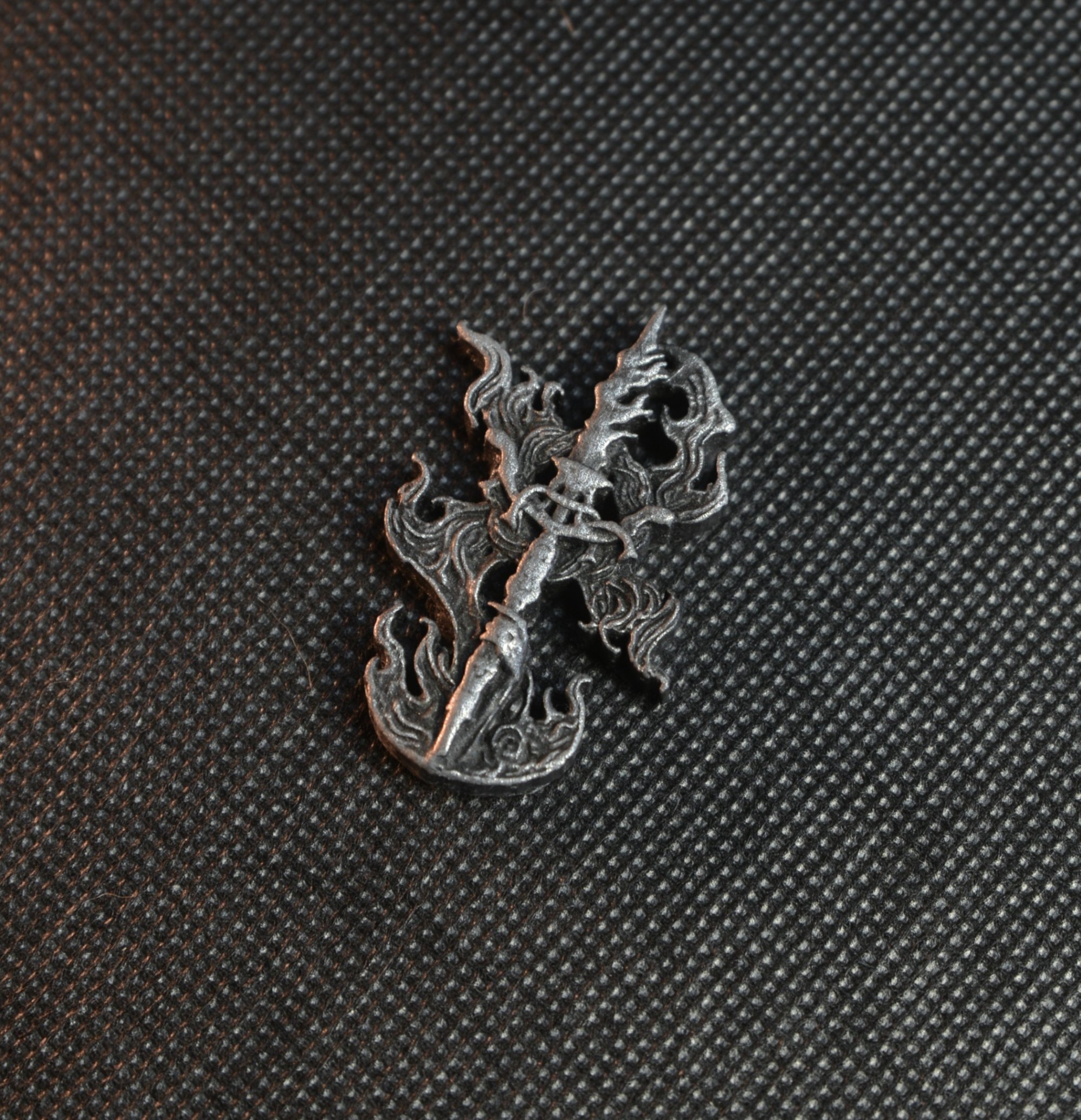 Pendant made in cold casting technique (resin mixed with real metal powder).