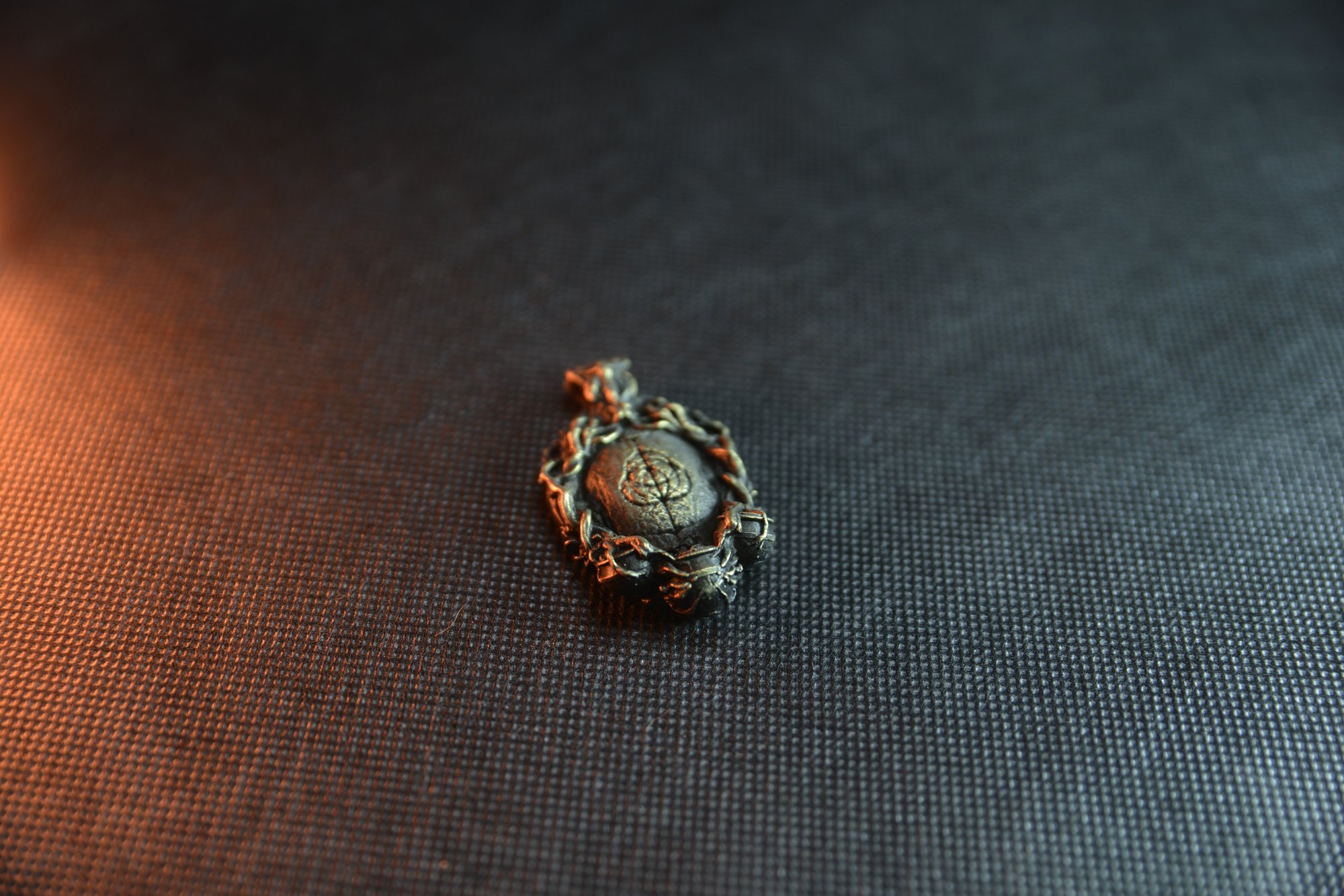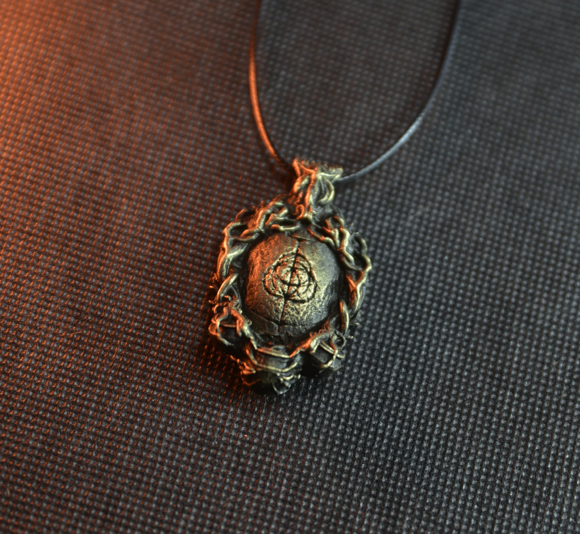 Brass cold cast pendant representing Great Elden rune. Black string attached +