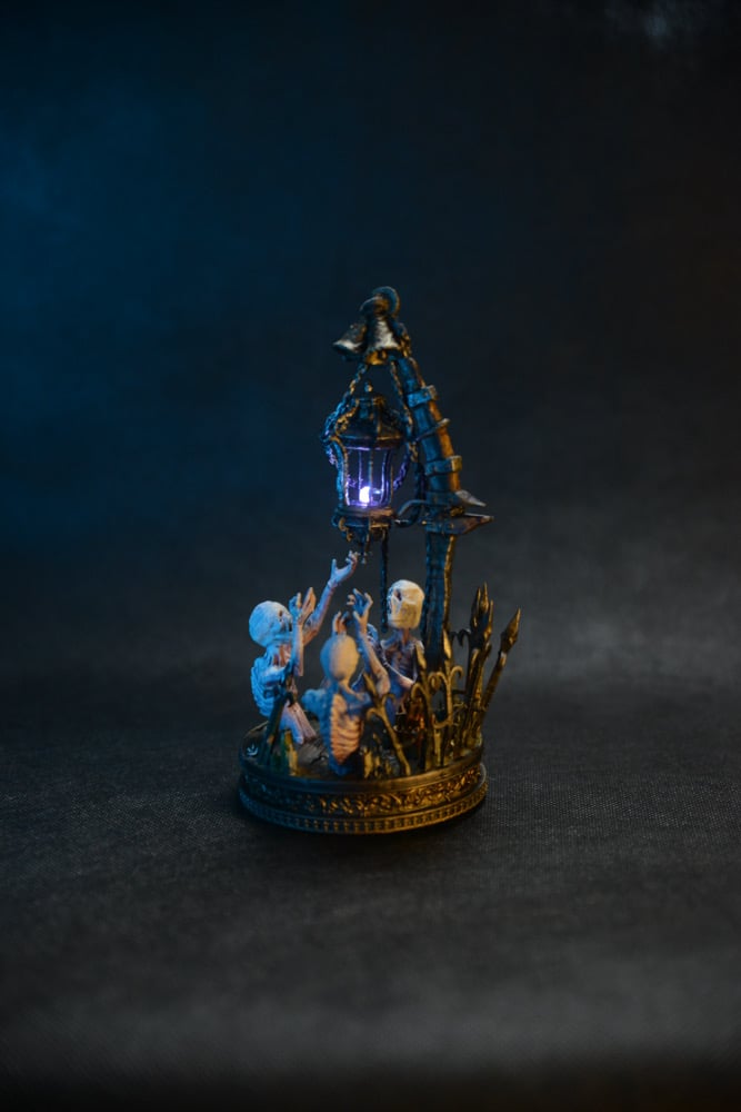 Custom hunter lamp with messengers around praying for hunter well-being.